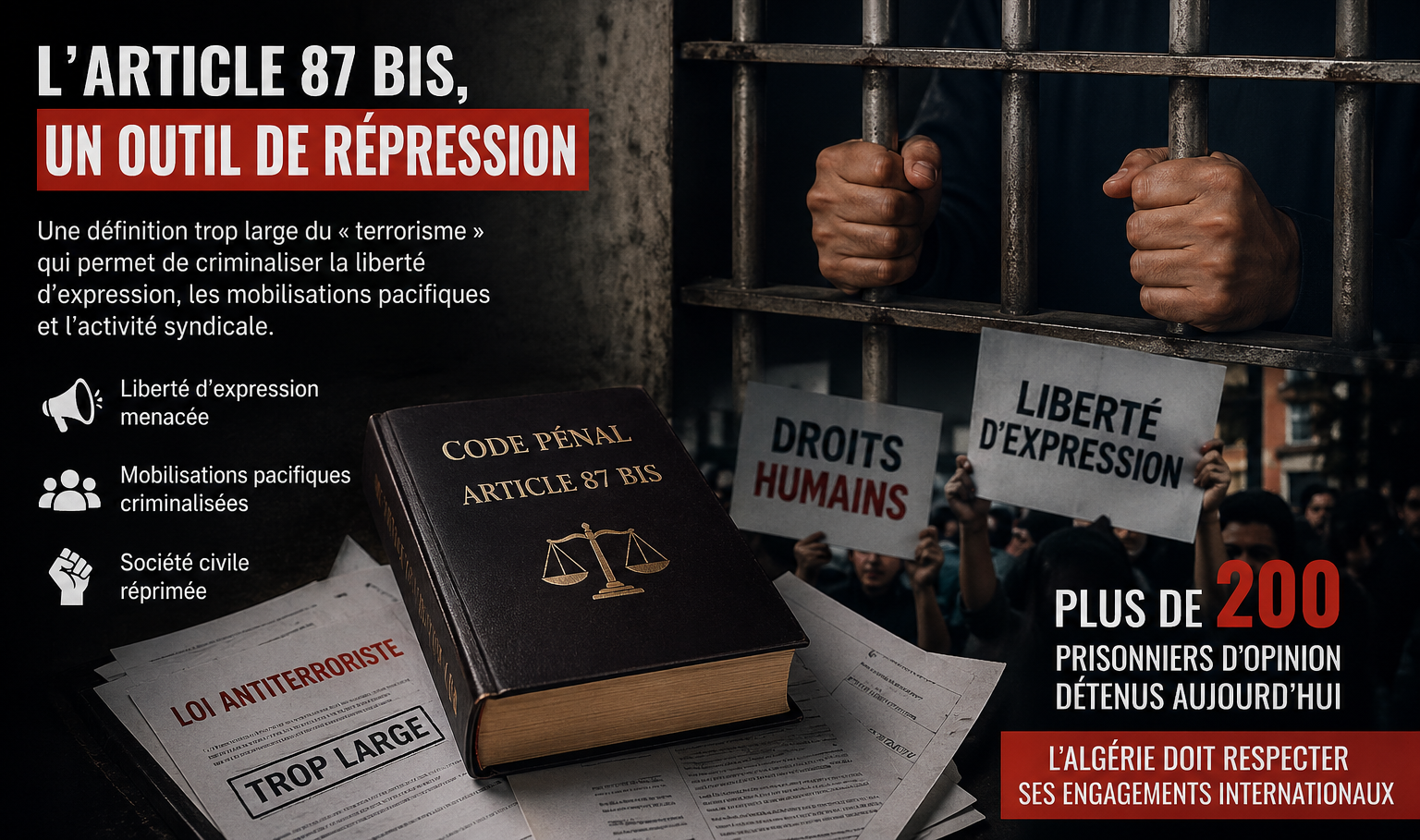 MENA Rights Group rappelle que l’article 87 bis du Code pénal algérien est régulièrement utilisé de manière abusive pour restreindre