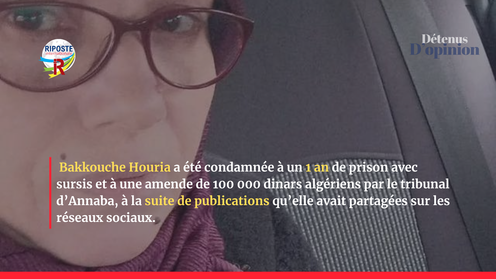 Annaba (Algérie) — La militante Bakkouche Houria a été condamnée à un an de prison avec sursis et à une