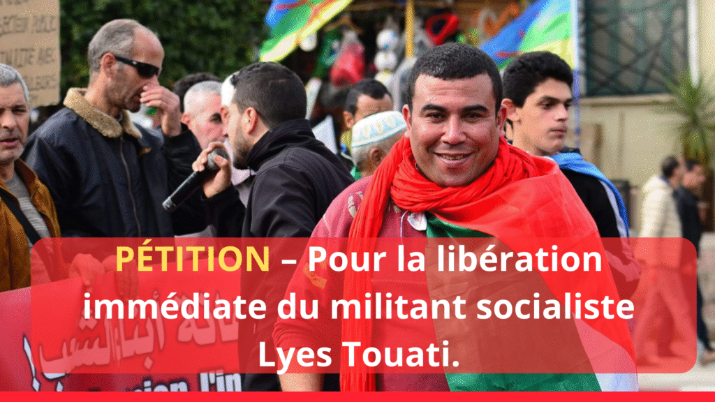 Membre dirigeant du Parti Socialiste des Travailleurs (PST), Lyes Touati a été placé en détention provisoire à la prison d’Oued Ghir sur ordre du juge d’instruction de Béjaïa. Il est poursuivi sur la base de l’article 87 bis du Code pénal, pour une prétendue « accointance avec le MAK », une accusation grave et infondée, passible de 5 à 10 ans d’emprisonnement.